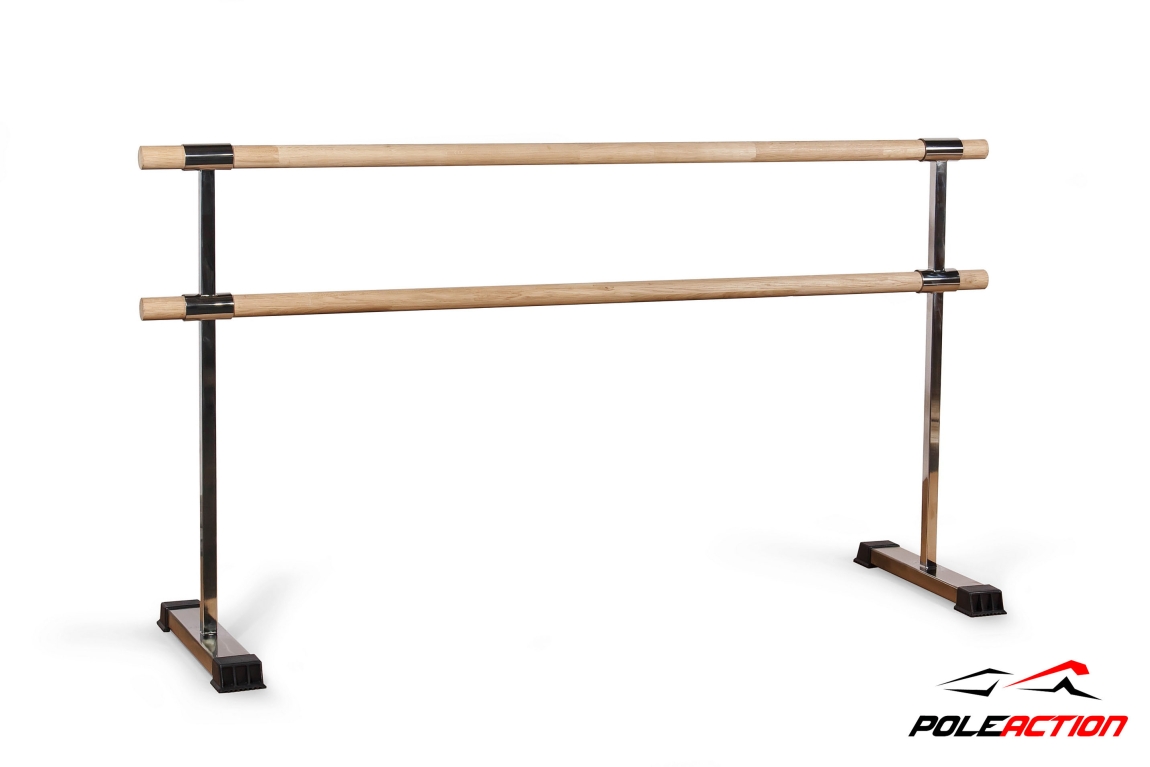 Высота нижнего поручня от пола составляет 75 см, высота верхнего поручня от пола составляет 110 см. Длина поручня - 2 метра. Это делает мобильный балетный станок универсальным как для начинающих, так и для профессионалов.