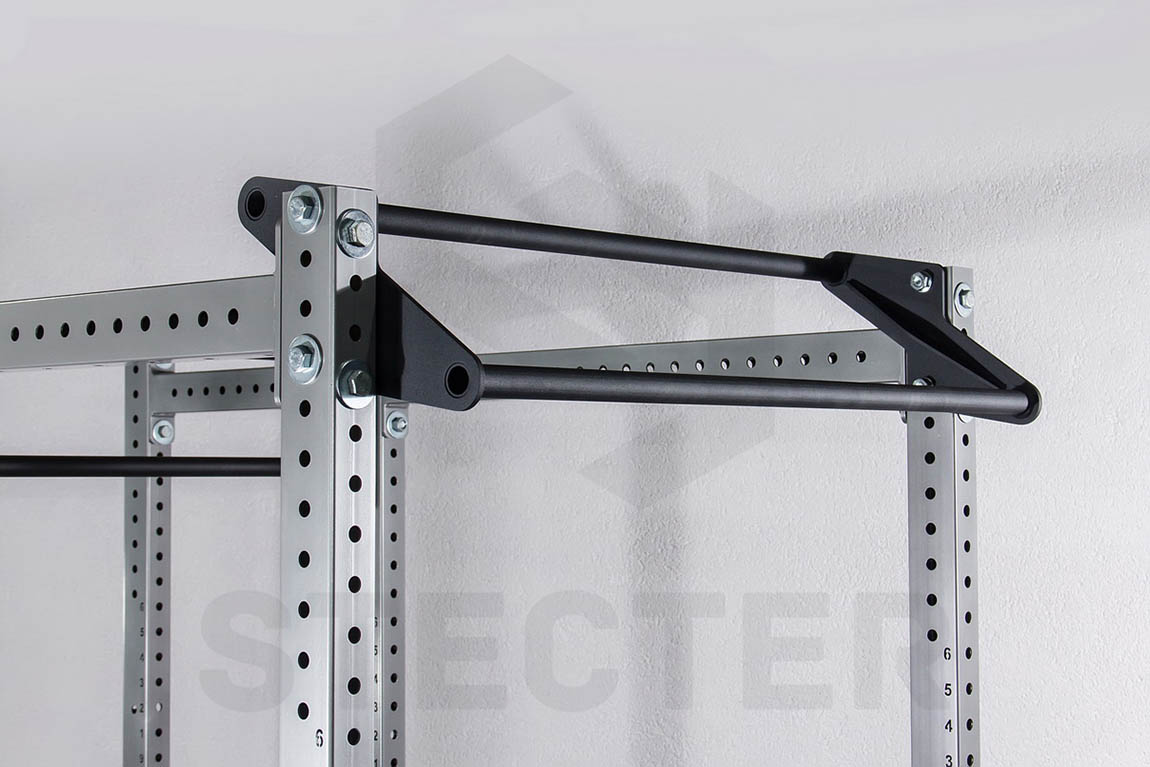 Если у Вас большая рама, то задача довольно легко решается - просто покупаете несколько одинарных перекладин и устанавливаете их на различной высоте. В случае с небольшими функциональными рамами и силовыми стойками на помощь приходит двойная перекладина "Качели". Она устанавливается между двумя опорными стойками и имеет два турника с разницей в высоте - 20 см. Таким образом, она экономит место и заменяет две одинарные перекладины.