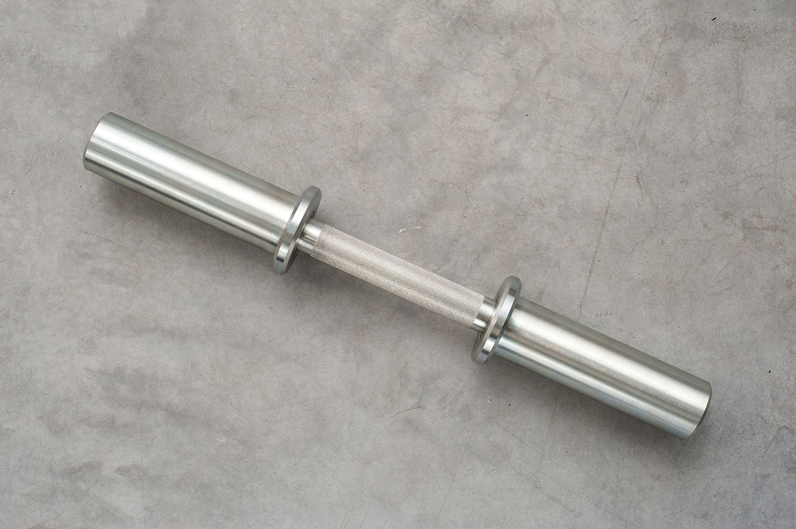 STECTER разработала гантельный гриф, нагружаемый дисками штанги с посадочным диаметром 50 мм. При изготовлении данного грифа полностью повторяется технологическая цепочка по изготовлению тренировочного грифа Bear Bar, только с более компактной рукояткой и рукавами. Таким образом мы получили новый универсальный продукт.
