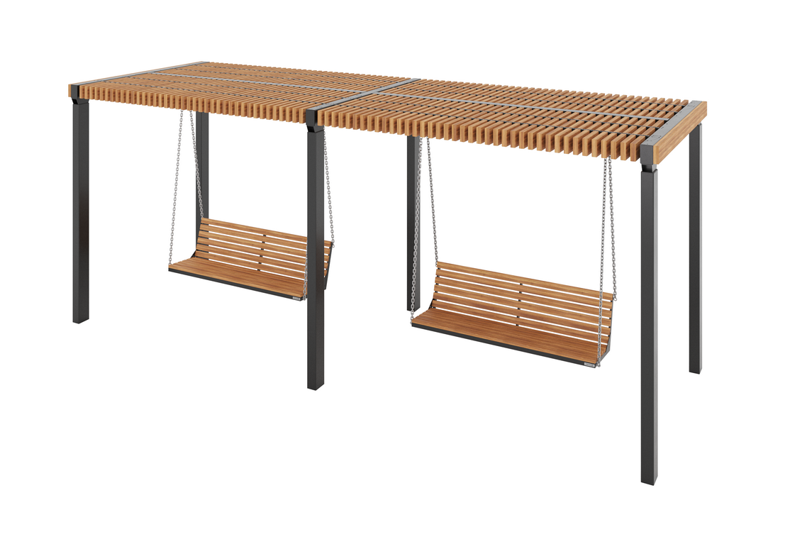 Качели “Викса” двойные, вместительные, гармонично впишутся в ландшафтный дизайн и станут одним из главных украшений территории.