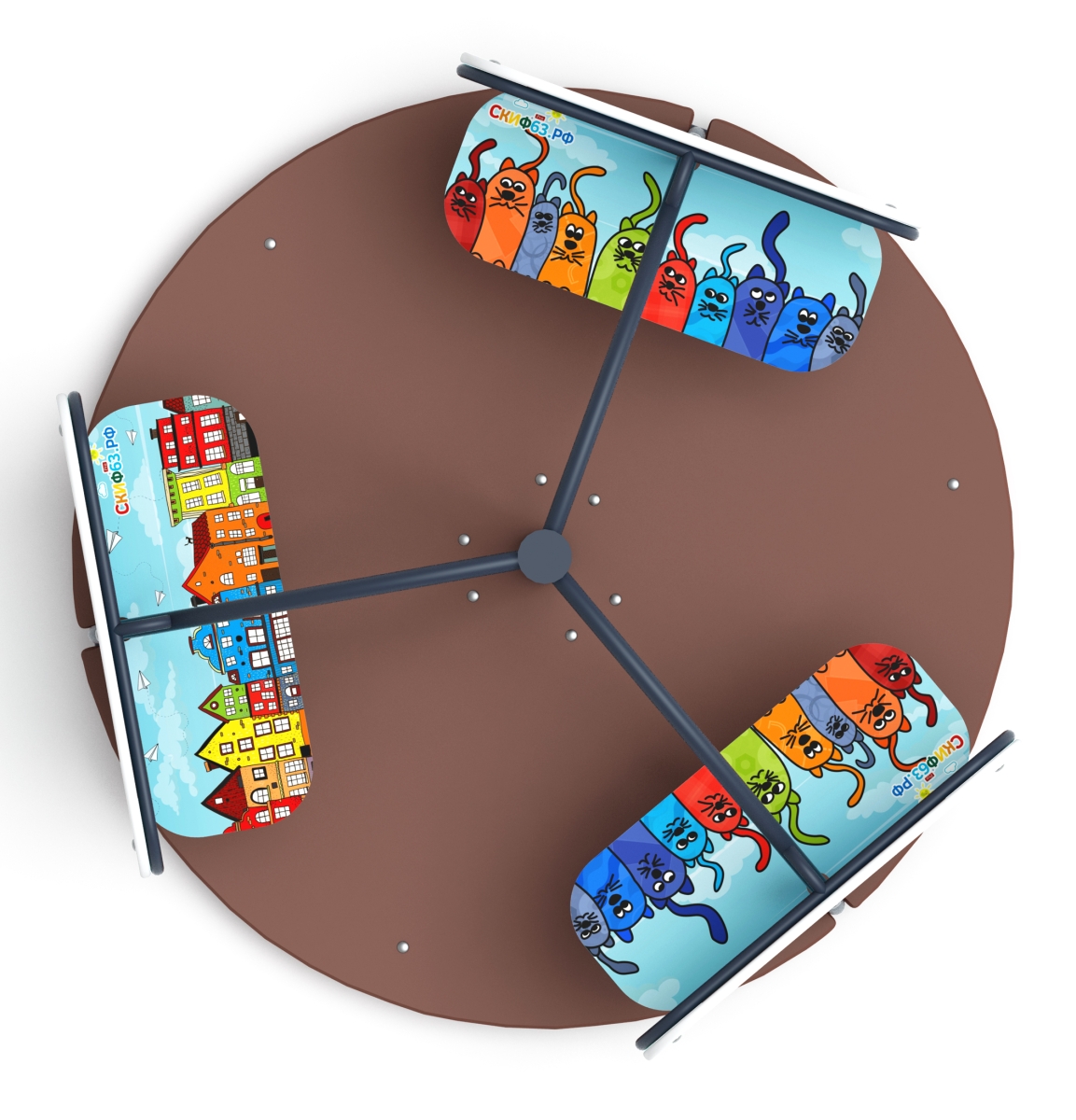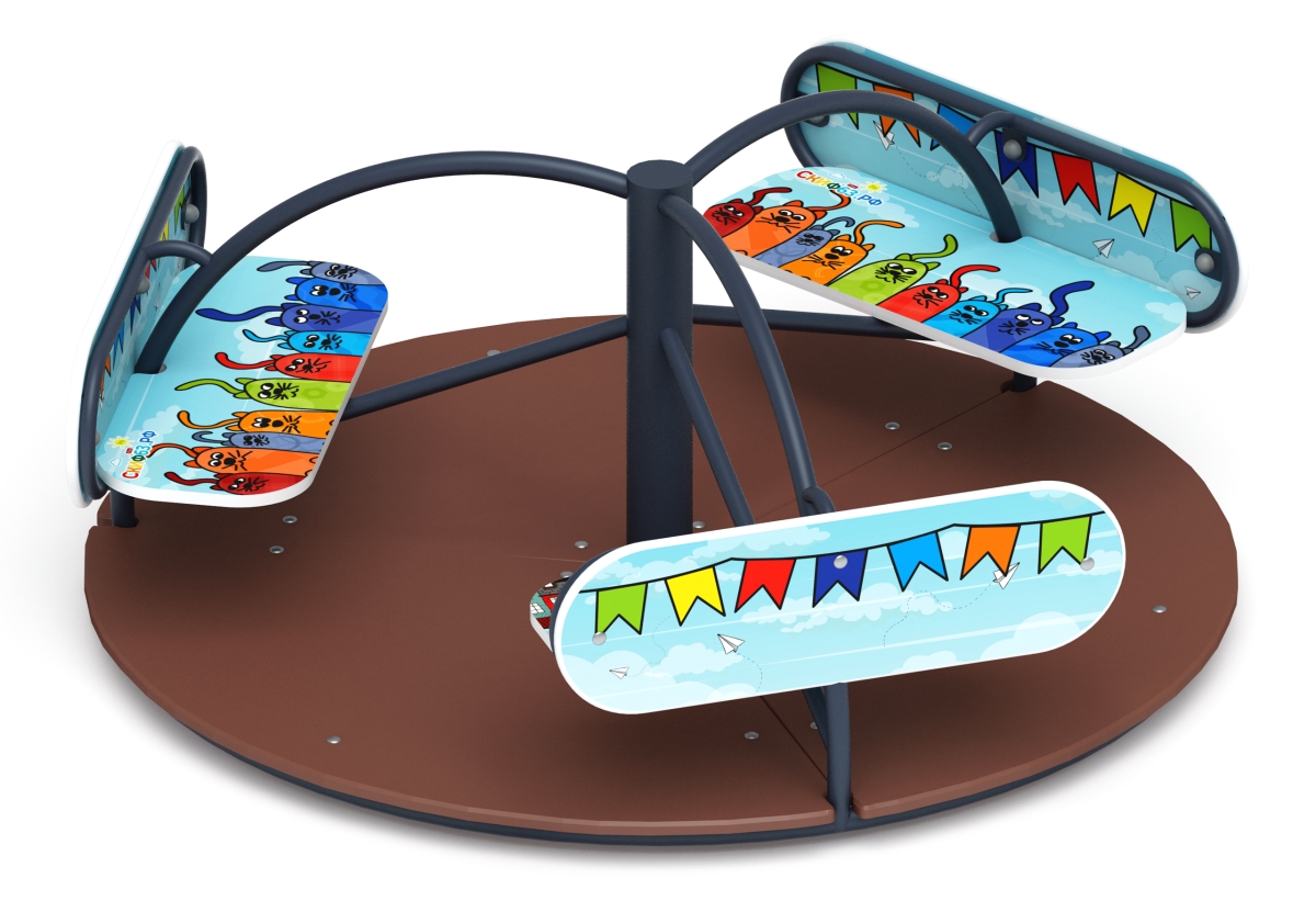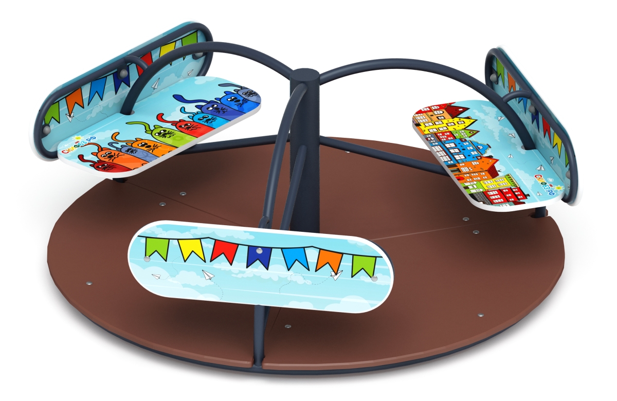 Карусель с сиденьями для детской игровой площадки Солнышко (Коты) ИО 30.01.03-С.10 - это отличный аттракцион, который служит для развлечения детей, а также их физического развития. Эффект кручения на карусели воздействует на вестибулярный аппарат, и помогает детям развивать чувство равновесия, координацию движений. Удобные сидения позволят даже маленьким детям безопасно и удобно кататься на карусели