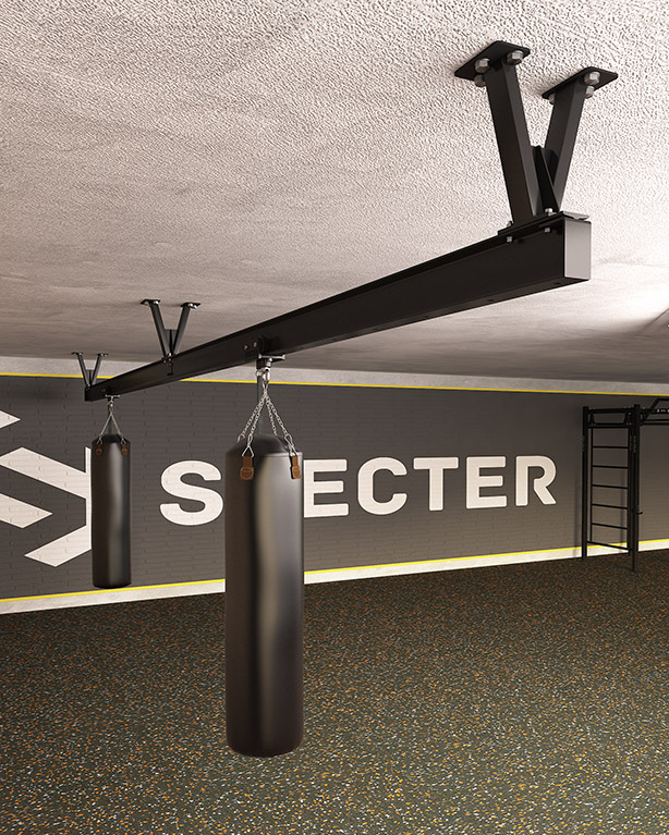 В любом спортивном зале рано или поздно встает вопрос со свободным пространством. Его становится очень мало. Чтобы помочь в решении данного вопроса мы предлагаем Вам готовый комплект рельсовой транспортировочной системы, для перемещения боксерских мешков внутри зала. Он позволяет за 2 минуты перед тренировкой установить боксерские мешки на "рабочие места", а после завершения тренировки так же очень быстро укатить их и освободить место для других занятий.