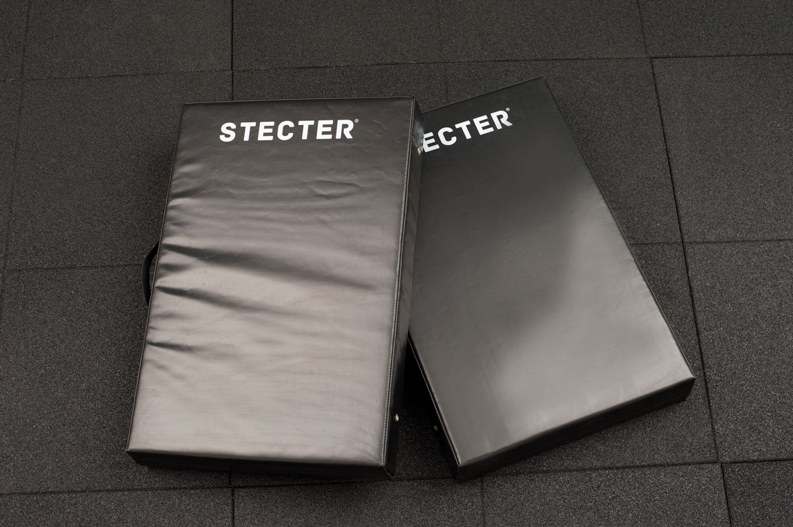 Мягкие плинты продаются парами. Размер каждого мата 750х500 мм. Высота 120 мм. Чехол сшит из прочного винила. Наполнителем служит вспененный полиуретан. Усиленная ручка вшита в каждый мат и облегчает его переноску. Специальные люверсы выпускают из мата излишний воздух при падении штанги. Вы можете купить мягкие плинты для штанги в нашем магазине.