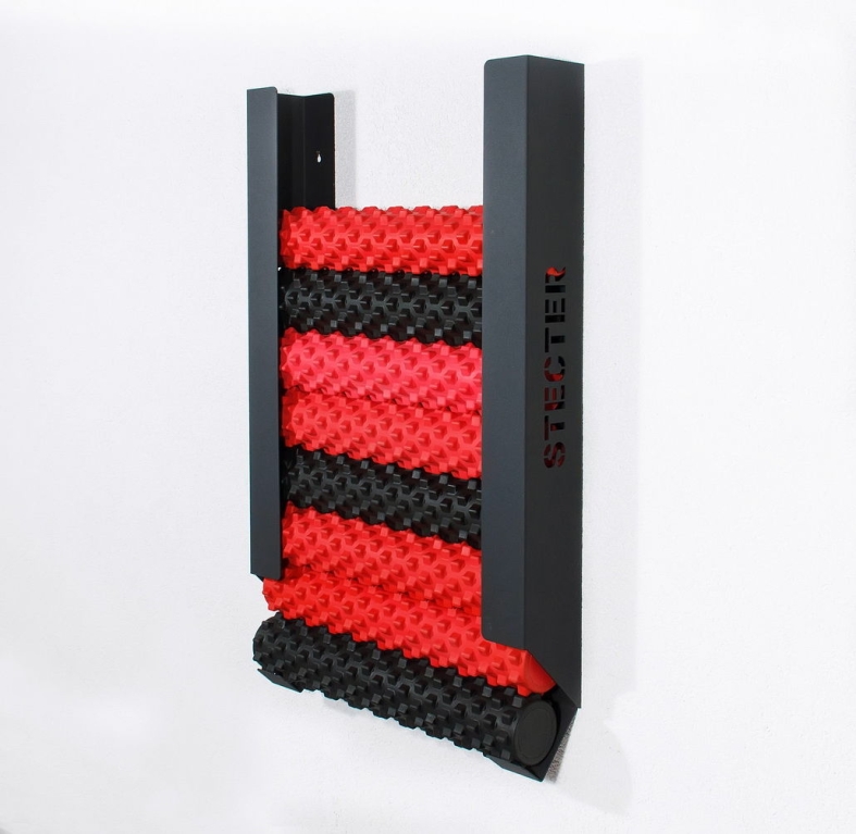 Компания Stecter предлагает простое решение данной проблемы, создав уникальный Настенный кронштейн для массажных валиков! Он может крепиться на любую ширину и вмещает до 10 роликов или более в зависимости от диаметра.