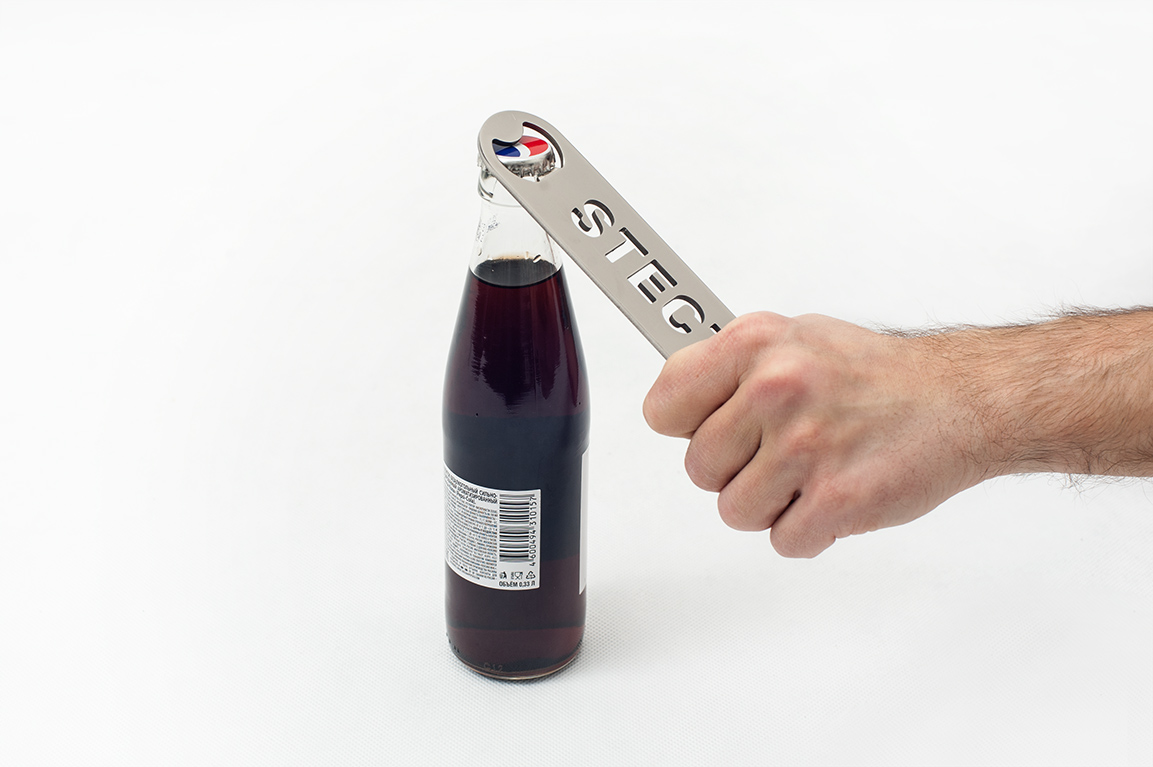 Открывашка для бутылок STECTER будет отличной идеей для подарка и сувениром. Она изготовлена из нержавеющей стали с полированной зеркальной поверхностью. Помимо основной её функции мы так же добавили отверстие в форме шестигранника, которое позволит использовать её в качестве гаечного ключа для резьбы М16.