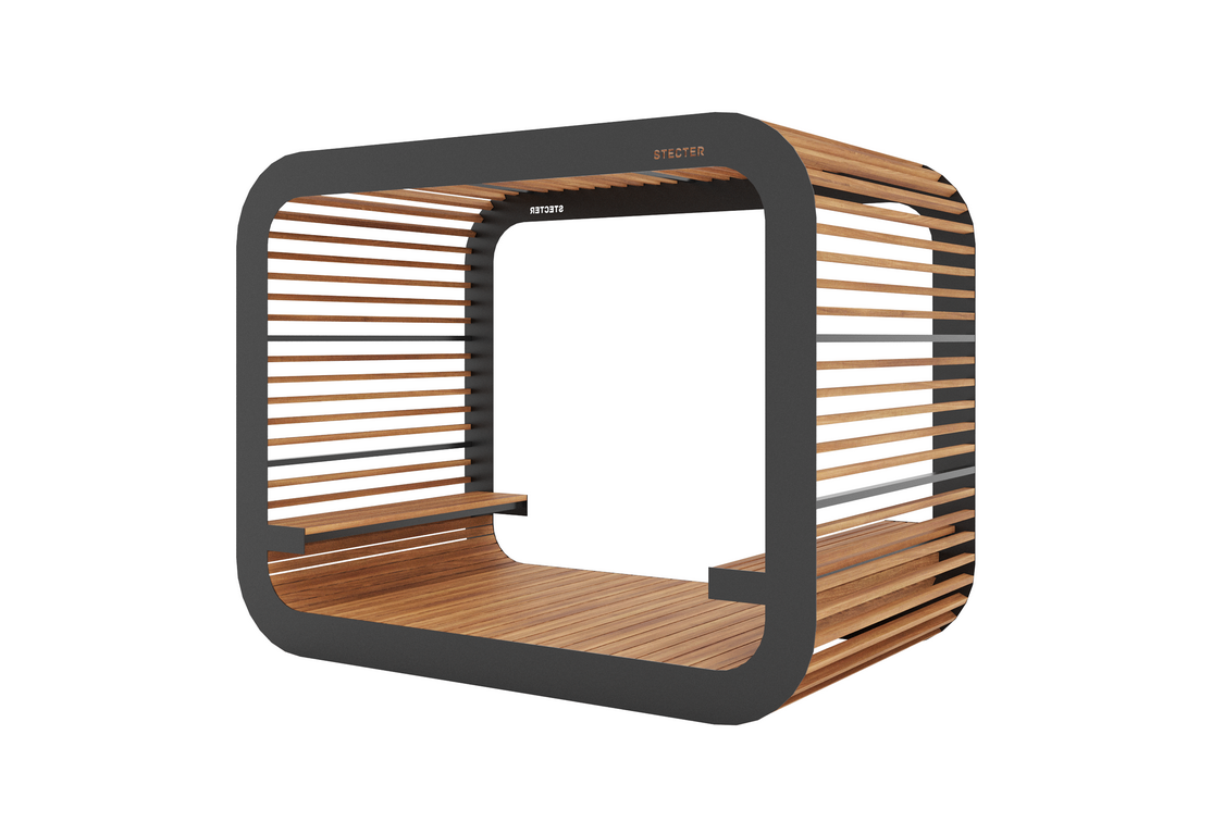 Пергола “Альфа” квадратной формы, имеет простой и лаконичный дизайн, оснащена двумя скамейками. Прекрасно украсит и дополнит любой парк или сквер.