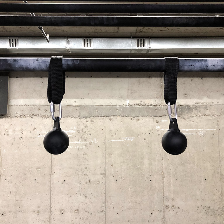 Подвес «Ядро» крепится на перекладину рамы или турник – для этого используется нейлоновая стропа и карабин, которые находятся в комплекте с оборудованием. Набор включает сразу два подвеса «Ядро». Диаметр шара из стали – 60 мм. Поверхность шара зачищена от заусенцев и окрашена противоскользящей порошковой краской. Вы можете купить подвес для тренировки силы хвата и сразу же перейти на качественно новый уровень подготовки