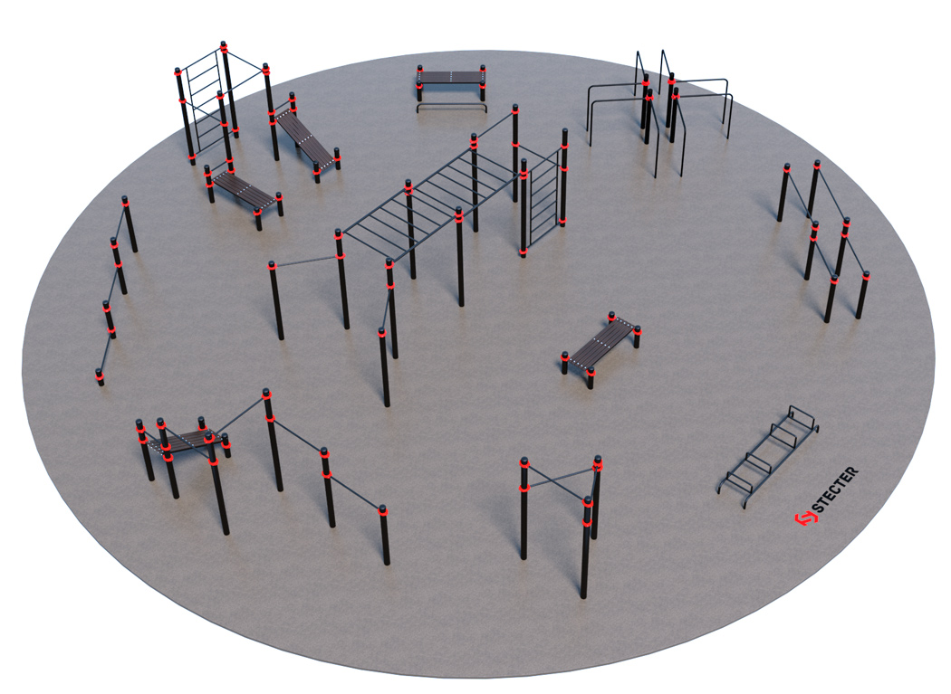 Спортивные комплексы отвечают всем требованиям по сдаче государственных норм физической подготовки! Металлические детали спортивных снарядов, покрыты атмосферостойкой порошковой краской, нанесенной методом электростатического напыления с последующим обжигом в печи.