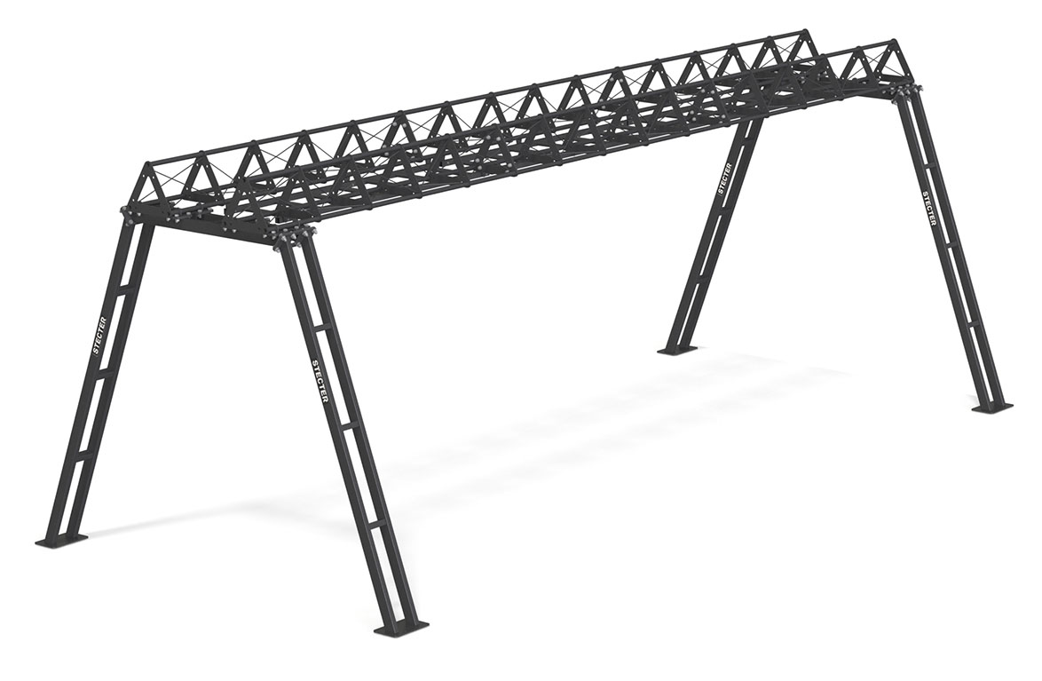 Между фермами установлен рукоход, который добавляет конструкции еще большую универсальность. При необходимости Вы можете закрепить опорные стойки к полу через предусмотрены специальные монтажные отверстия.