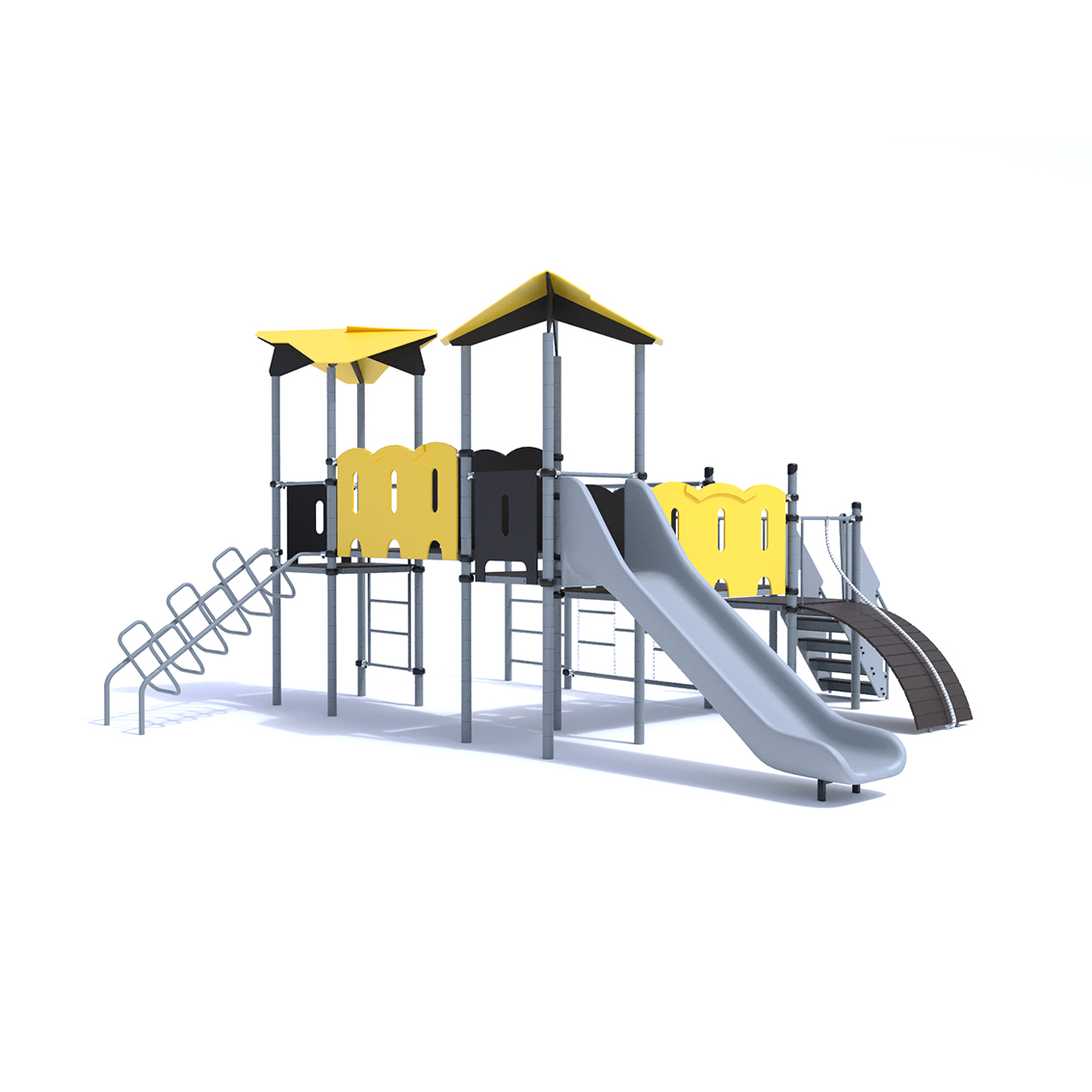 Игровой комплекс для тематических игр и физического развития предназначен для детей в возрасте от 8 лет. Изделие представляет собой сборно-разборную каркасную конструкцию из металлических труб, установленную на забетонированные стойки.