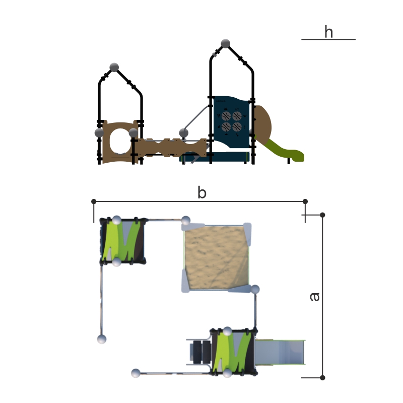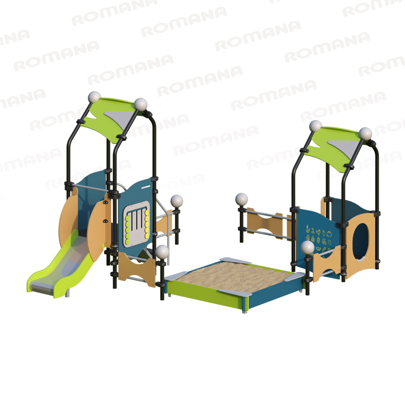Это игровое оборудование изготовлено для оснащения уличных детских площадок. В составе есть: