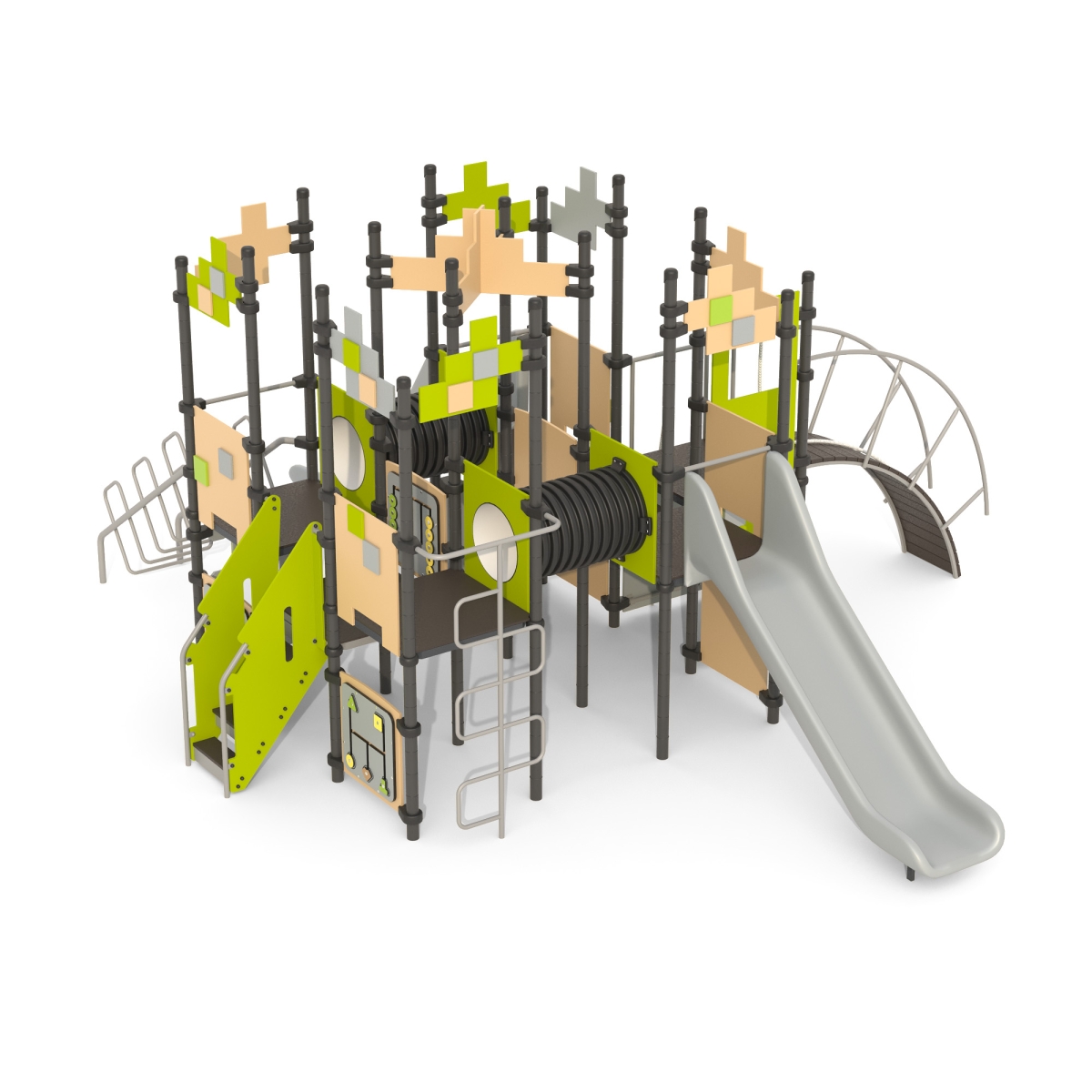 Сборный игровой комплекс создан из высококачественных материалов: металла, пластика и фанеры. Это безупречное решение для детских площадок в многоквартирных дворах. Блоки комплекса оснащены разнообразными горками, лестницами и прочими игровыми элементами. Специальные трубы-лазы создают безопасные и интересные маршруты для детей. Этот игровой комплекс станет отличным местом для активного отдыха и веселья детей на свежем воздухе. Каждое изделие проходит строгий контроль ОТК, чтобы соответствовать высоким европейским стандартам качества и требованиям ГОСТ. Современные технологии напыления и инновационные красители предлагают яркие расцветки, которые не выгорают под воздействием солнца. Установка производится методом бетонирования. Антивандальное исполнение обеспечивает долговечность.