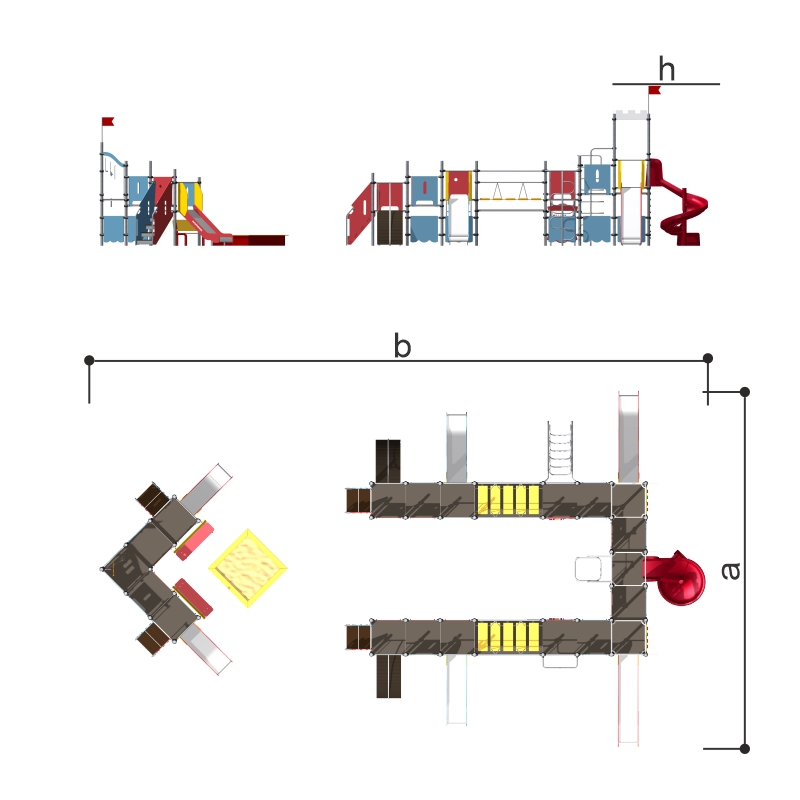 Детская площадка «Корабль Romana 101.51.00» - это игровой комплекс с горкой и переходом для детских игровых площадок.Изделие устанавливается на открытых уличных участках, находящихся под контролем ответственного лица – эксплуатанта. Установка Изделия должна проводится на ровной площадке, свободной от насаждений. В зоне приземления должно быть ударопоглощающее покрытие (песок, древесные опилки) минимальной толщиной 300 мм