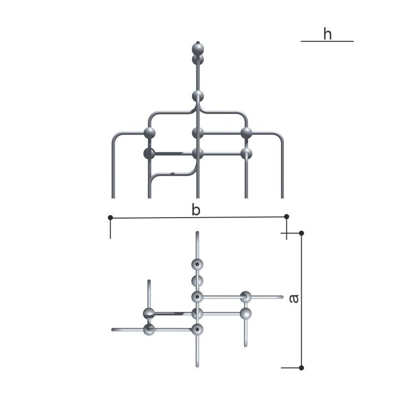Выполнен в виде металлических стоек из 057 трубы, соединенный шарами.