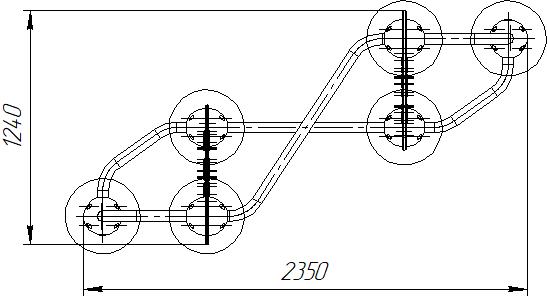 Комплекс выполнен в виде металлических стоек из 057 трубы, фанеры, скрепленных между собой сферами.