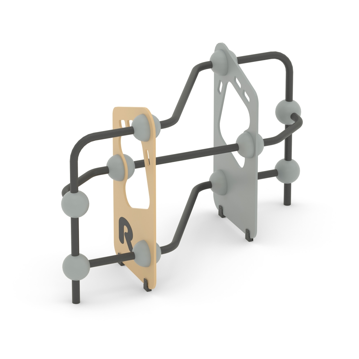 Комплекс выполнен в виде металлических стоек из 057 трубы, фанеры, скрепленных между собой сферами.