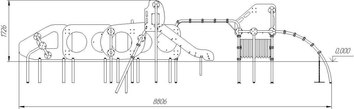 Оборудование уличное представляет собой устойчивую конструкцию, обеспечивающую безопасные условия для развивающих занятий на открытом воздухе.