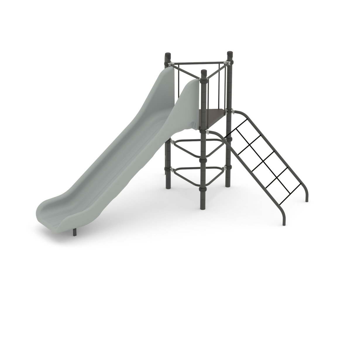 Выполнен в виде металлических стоек, образующих треугольник. К стойкам присоединена горка.