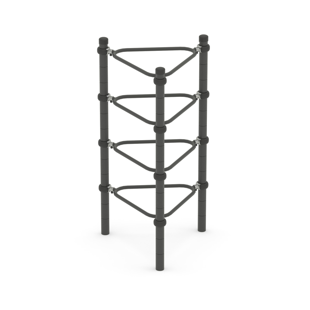 Выполнен в виде металлических стоек, образующих треугольник.