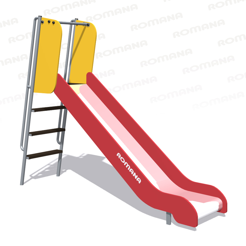 Горка представляет собой металлическую лестницу c фанерными ступенями, площадку, ограждения площадки и скат. Горка имеет стартовую площадку, полосу скольжения и полосу торможения. В целях безопасности на стартовом участке горки предусмотрены защитные боковые экраны. Высота горки составляет 1250 мм.