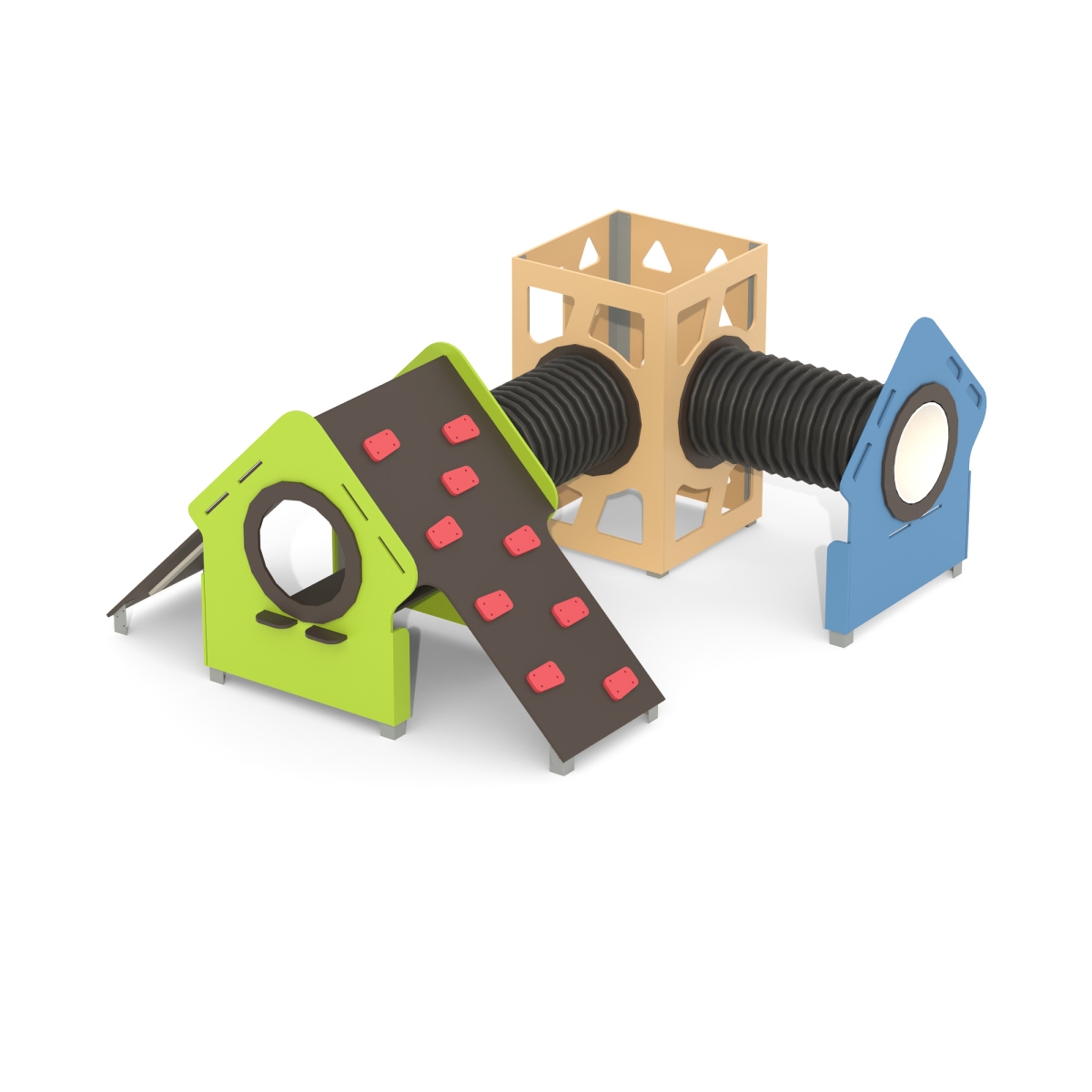 Игровой модуль для тематических игр и физического развития предназначен для детей в возрасте от 4 до 8 лет. Изделие должно представлять собой устойчивую конструкцию, обеспечивающую безопасные условия для занятий на открытом воздухе. Конструкция должна обладать высокой ударопрочностью и виброустойчивостью.