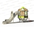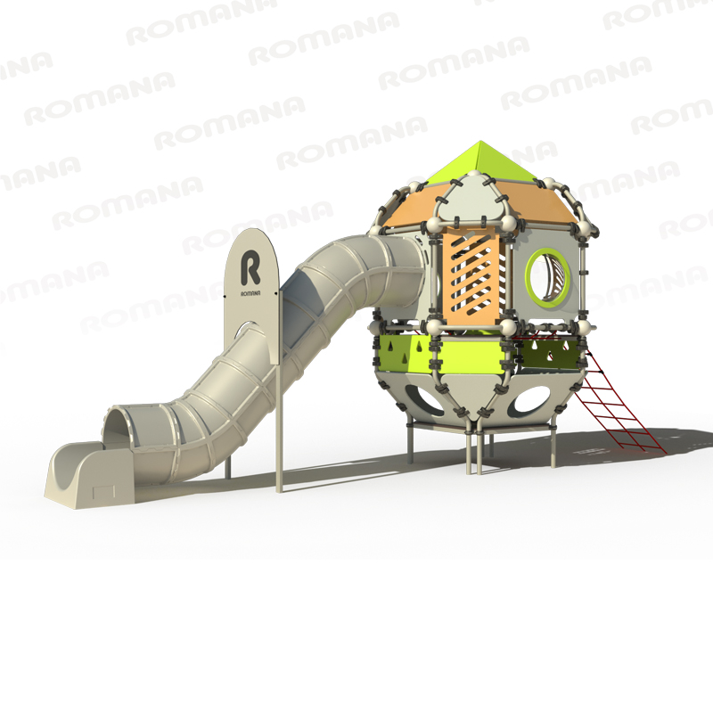 В комплекс входят: модуль в виде башни, закрытая горка тоннельного типа с канатным лазом из полипропиленовых армированных нитей для доступа на горку.