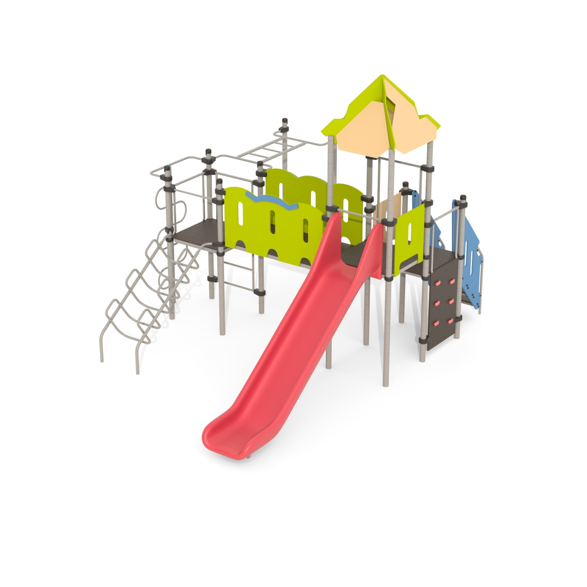 Детская площадка «Romana 101.10.09» - это комплекс с домиком и горкой, рукоходами и лазами. Различными лестницами. Помогает развивать у детей гибкость, ловкость и укреплять мышцы.