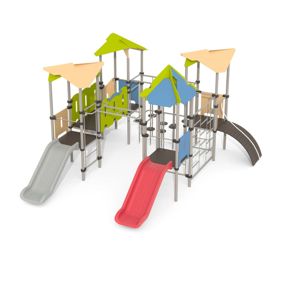 Детская площадка «Romana 101.12.00» - игровой комплекс с переходами, различными лесенками и горками, канатами и сеткой для лазанья. Помогает развить ребенку ловкость и гибкость, а так же укрепить мышцы.Изделие устанавливается на открытых уличных участках, находящихся под контролем ответственного лица – эксплуатанта. Установка Изделия должна проводится на ровной площадке, свободной от насаждений. В зоне приземления должно быть ударопоглощающее покрытие (песок, древесные опилки) минимальной толщиной 300 мм.