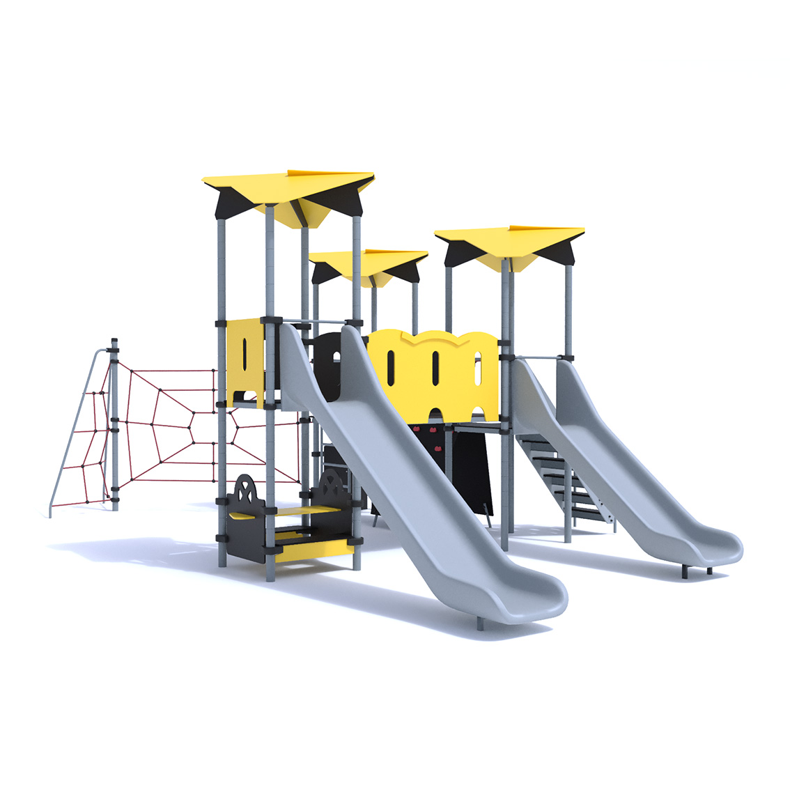 Игровой комплекс для тематических игр и физического развития предназначен для детей в возрасте от 4 лет. Изделие представляет собой сборно-разборную каркасную конструкцию из металлических труб, установленную на забетонированные стойки.
