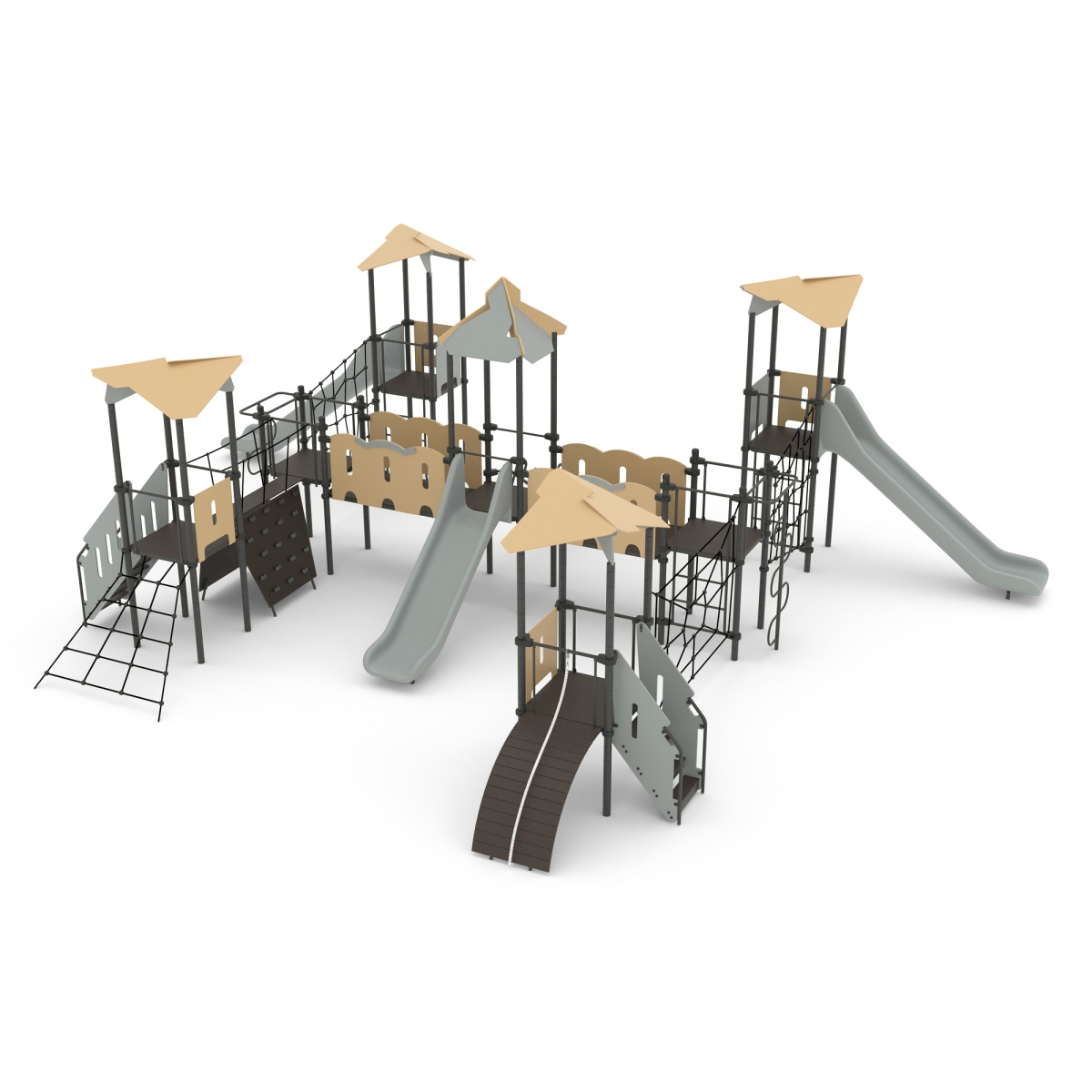 Игровой комплекс для тематических игр и физического развития предназначен для детей в возрасте от 8 лет. Изделие представляет собой сборно-разборную каркасную конструкцию из металлических труб, установленную на забетонированные стойки.