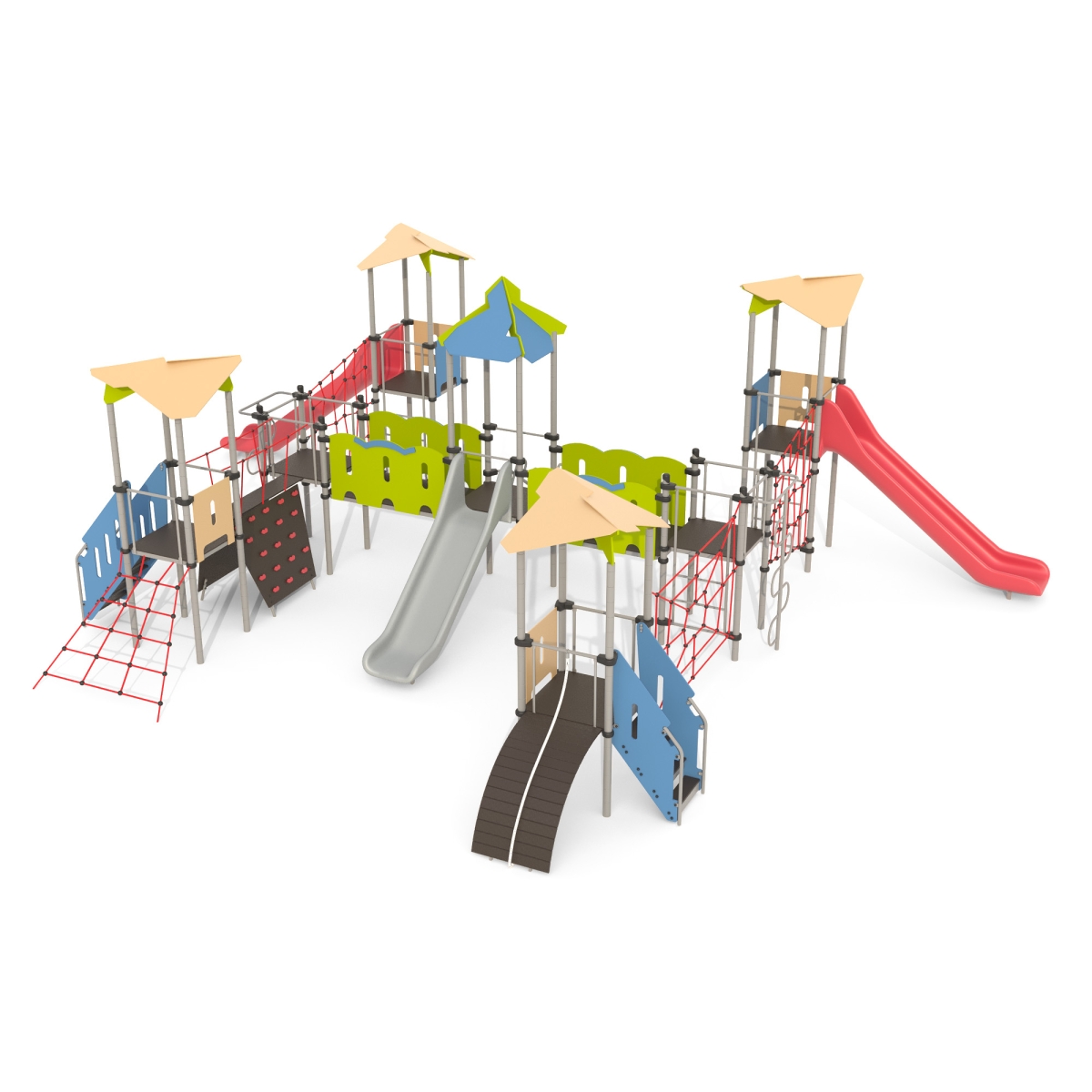 Игровой комплекс для тематических игр и физического развития предназначен для детей в возрасте от 8 лет. Изделие представляет собой сборно-разборную каркасную конструкцию из металлических труб, установленную на забетонированные стойки.