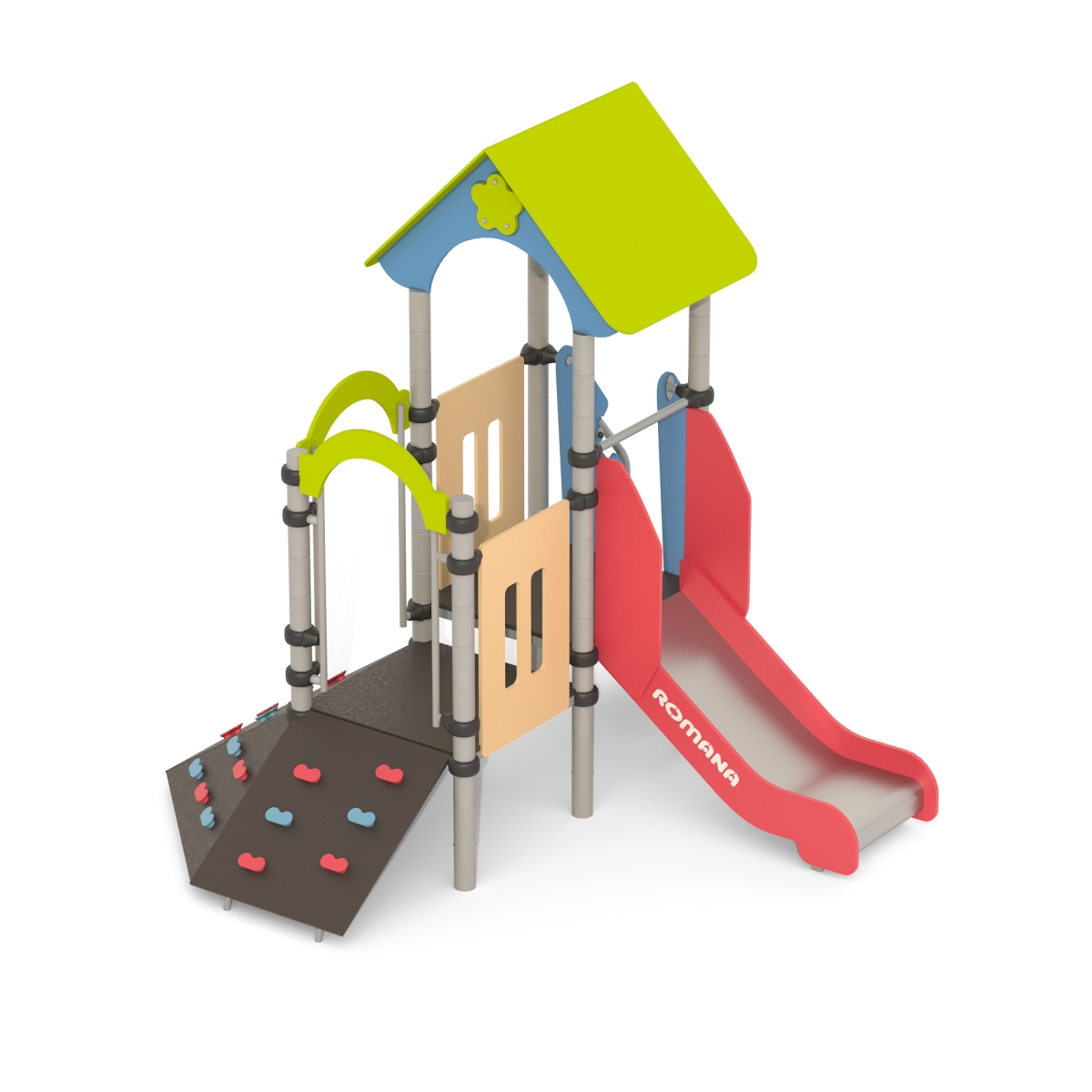 Детская площадка «Romana 104.05.00»- это небольшой домик- горка со скаладромом. Помогает развивать у детей гибкость, ловкость и укреплять мышцы. Подходит для любых площадок.