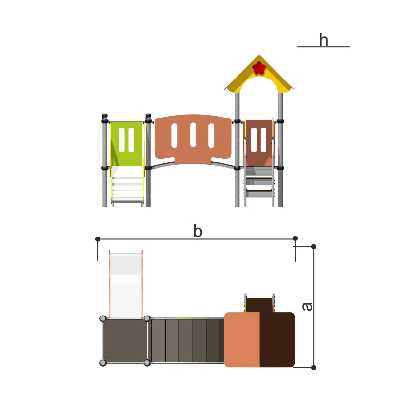 Детская площадка «Romana 104.19.00» с домиком, горкой и переходом, подходит для небольших площадок на территории детских садов и дворовых площадок, на дачном участке. Позволяет детям развивать координацию и ловкость. Высота горки 650.