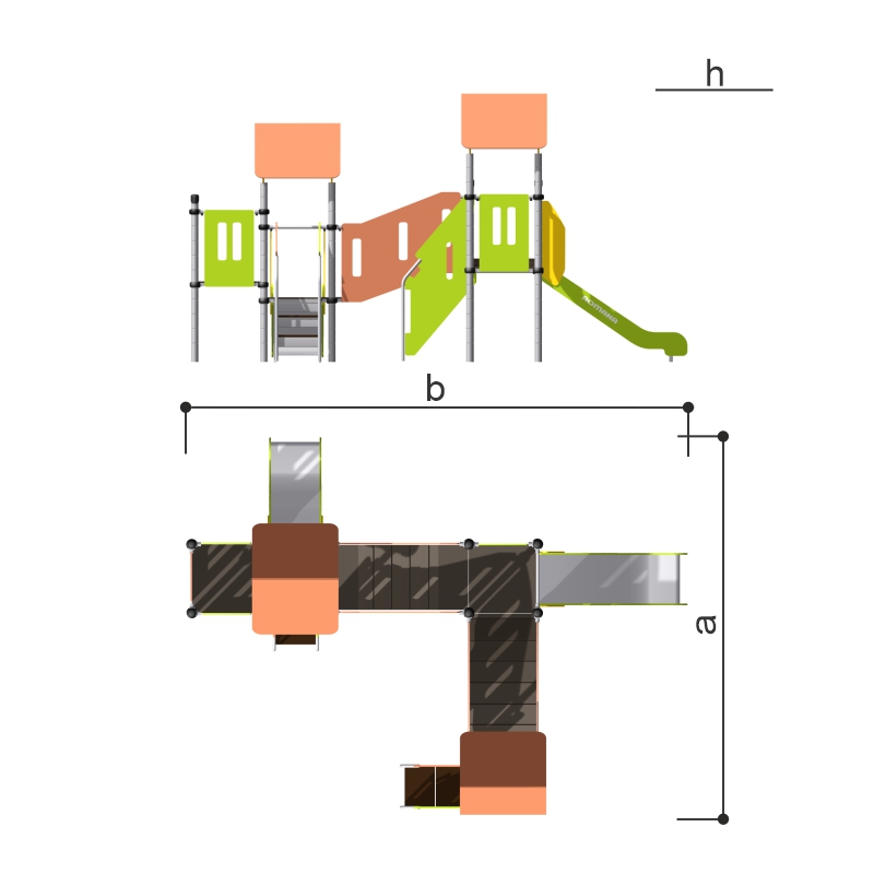 Детская площадка «Romana 104.20.00» с двумя домиками-горками, и переходами, подходит для детских садов и дворовых площадок. Позволяет детям развивать координацию и ловкость. Высота горок 650 и 950.