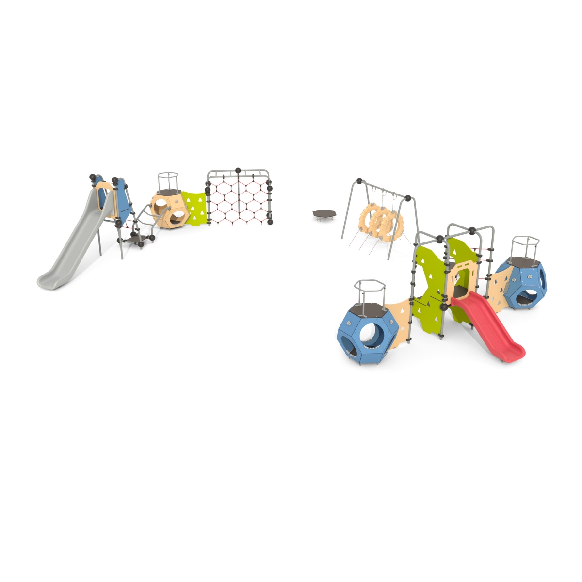 Горка, октаэдр, деревянная стенка, сетчатая стенка для лазанья.
