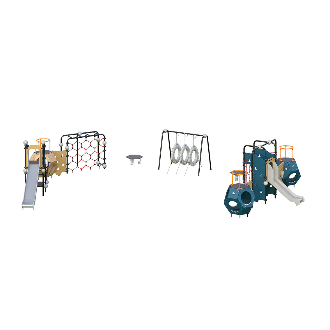 Горка, октаэдр, деревянная стенка, сетчатая стенка для лазанья.