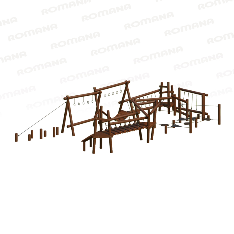 Особенности: платформы на разных высотах, канатные сети, кольца на цепях. Элементы модели, изготовленные из натуральной древесины, обработаны нетоксичным антисептиком и маслом, места крепежа закрыты заглушками. Высота свободного падения — 1360 мм. Комплекс развивает ловкость, силу и координацию, предусматривает разнообразные способы преодоления препятствий. Подходит для активного отдыха детей в парках, школах и на спортивных площадках.