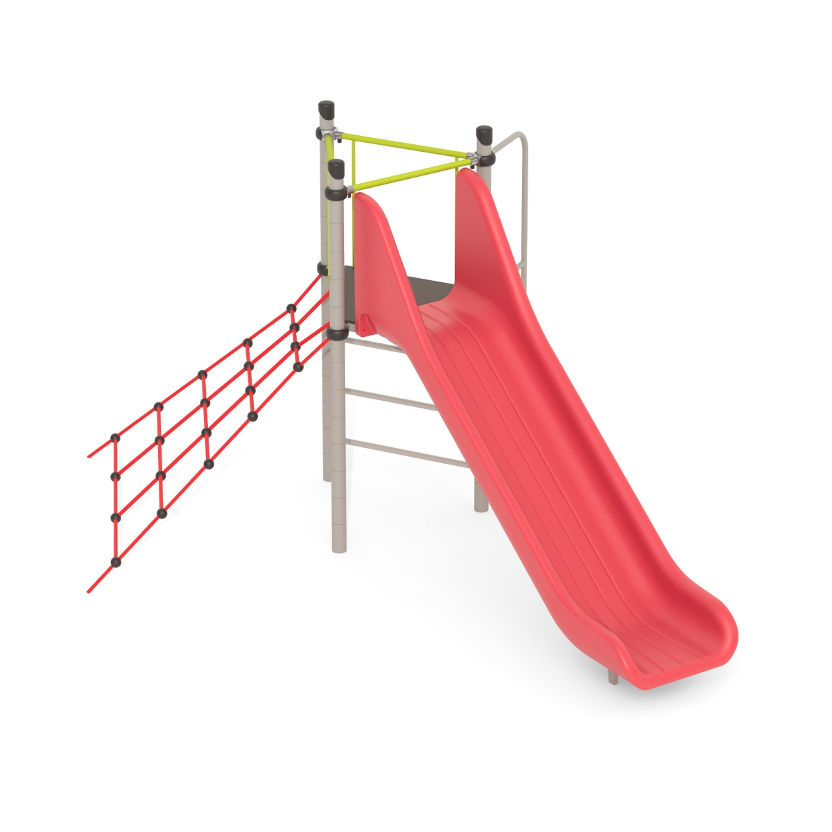 Выполнен в виде металлических стоек, образующих треугольник, к стойкам прикреплены канатный лаз, горка.
