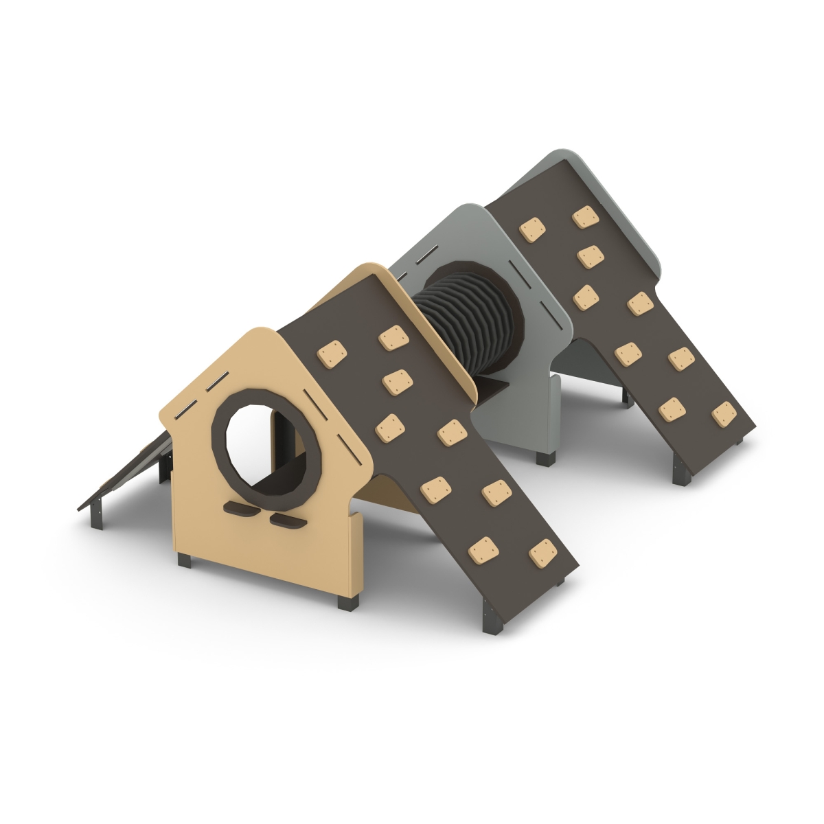Игровой модуль для тематических игр и физического развития предназначен для детей в возрасте от 4 до 8 лет. Изделие должно представлять собой устойчивую конструкцию, обеспечивающую безопасные условия для занятий на открытом воздухе. Конструкция должна обладать высокой ударопрочностью и виброустойчивостью.