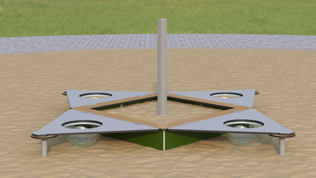 Песочница соответствует требованиям ГОСТ Р 52169-2012 по безопасности. Крышки защищают песок от загрязнений и могут использоваться как игровые столики. Прозрачные полусферы стимулируют любознательность детей. Конструкция способствует развитию моторики, социальных навыков и творческого мышления. Высота свободного падения — 218 мм. Модель подходит для детских садов, парков и дворовых территорий.