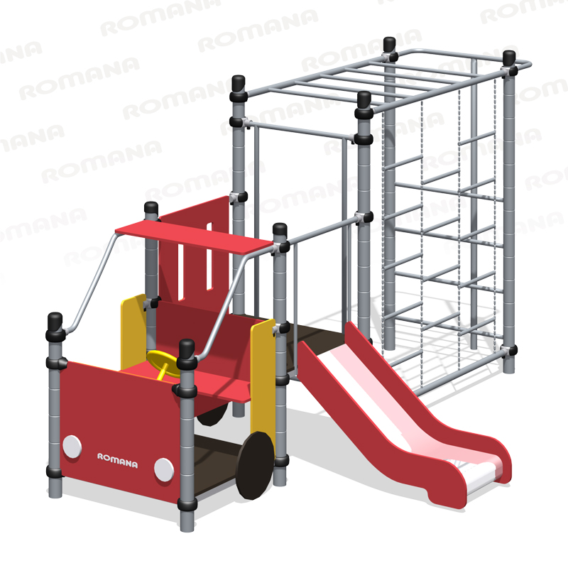 Изделие состоит из кабины Пожарной машины, за которой расположена площадка с горкой (h=650 мм), и рукоход, расположенный между стойками площадки и двухстоечной лестницей на высоте не более 1960 мм. над уровнем земли.