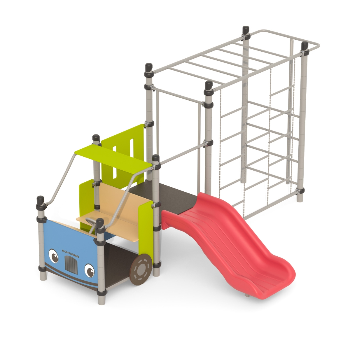 Изделие состоит из кабины Пожарной машины, за которой расположена площадка с горкой (h=650 мм), и рукоход, расположенный между стойками площадки и двухстоечной лестницей на высоте не более 1960 мм. над уровнем земли.