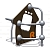Выполнен в виде металлических стоек из 057 трубы, фанеры в виде домика, скрепленных между собой сферами.