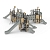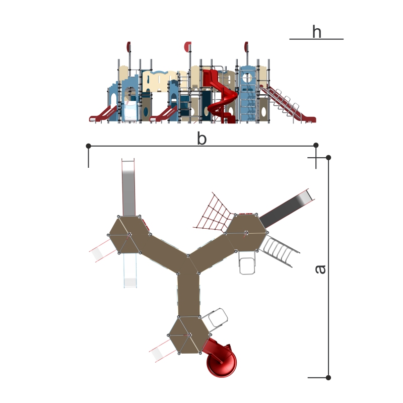 Игровой комплекс для тематических игр и физического развития предназначен для детей в возрасте от 8 лет. Изделие представляет собой сборно-разборную каркасную конструкцию из металлических труб, установленную на забетонированные стойки.