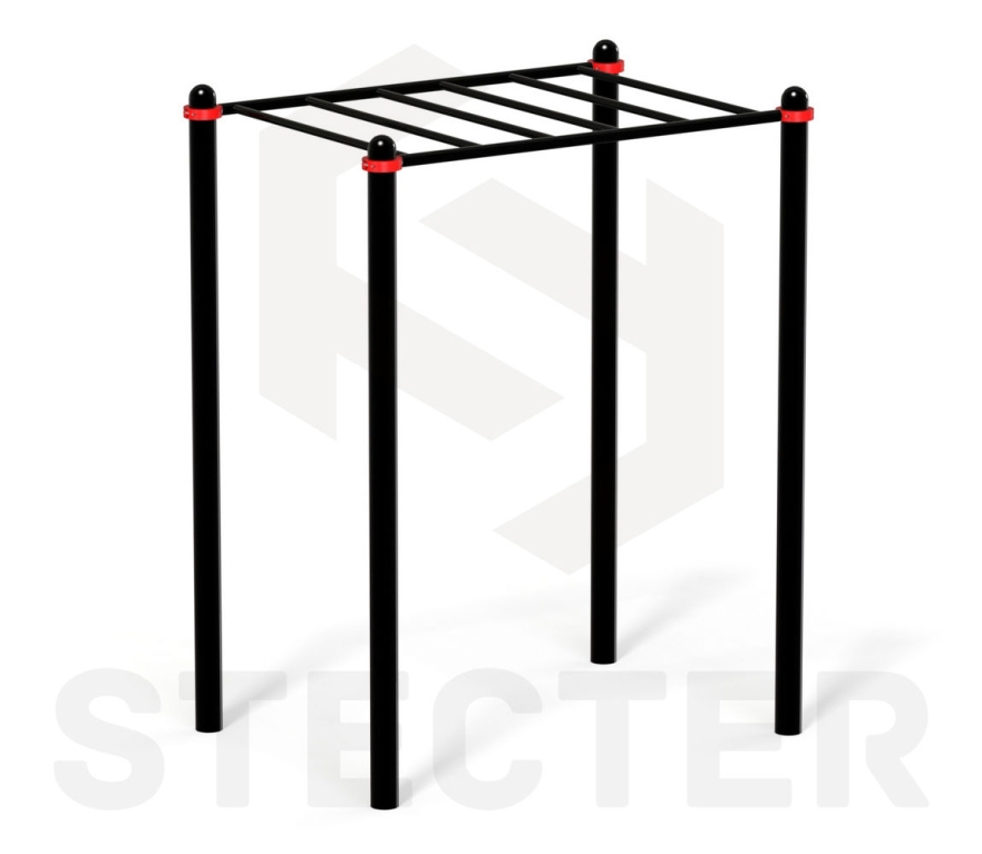 Рукоход устанавливается на четырех вертикальных столбах высотой 2600 мм. Столбы сверху закрыты полусферами. Рукоход состоит из одной секции длиной 1800мм. Конструкция рукохода фиксируются на высоте 2400 мм. Шаг перекладин рукохода 330 мм. Диаметр перекладин 34 мм.