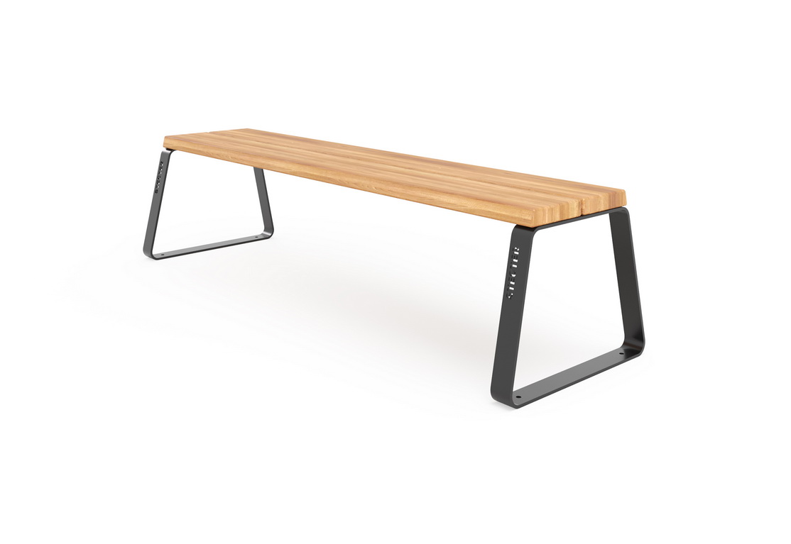 Сиденье - две ламели, изготавливается из деревянных брусьев, которые покрыты специальной лессирующей пропиткой и террасным маслом, для придания дереву нужного цветового оттенка и уменьшения влияния осадков. Металлический каркас окрашивается порошковой краской. Далее, покрывается средствами для защиты от коррозии и сохранения внешнего вида.