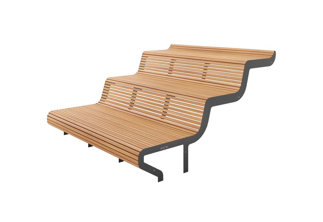Каркас модульного сидения из стали, окрашен порошковой краской. Сиденье сделано из дерева: сосна, лиственница или термососна. Натуральное дерево - это экологичный и безопасный материал.