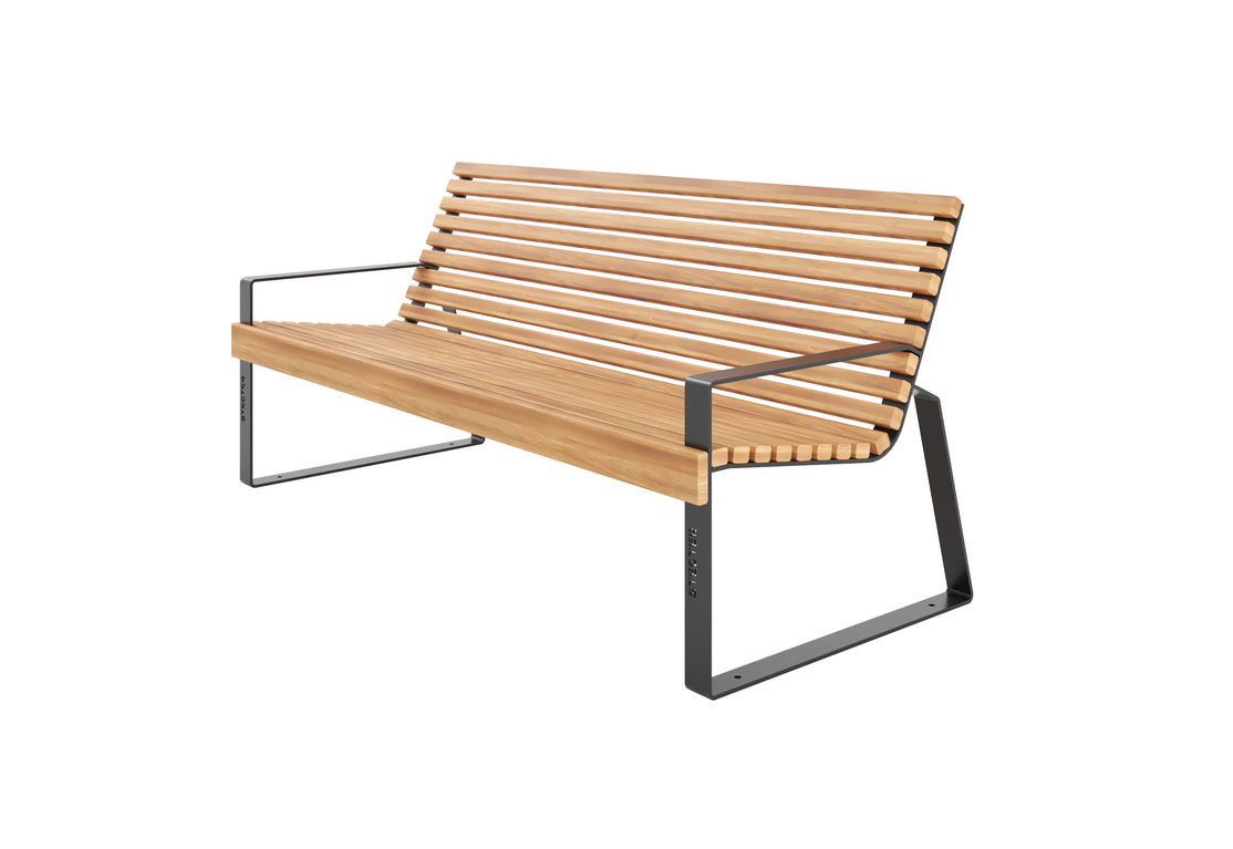 Уличная скамейка “Стения” изящная и удобная - есть спинка, подлокотники.