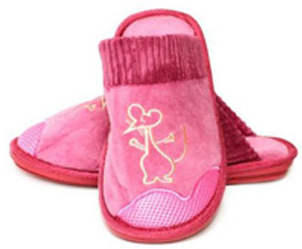 Симпатичные тапочки, украшенные вышивкой в виде мышки. Модель оформлена рисунком в полоску. Комфортная и уютная обувь для домашнего отдыха.