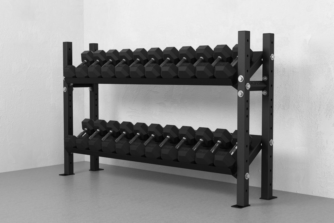 Проблемы хранения и систематизации инвентаря знакомы всем спортивным клубам – от маленьких районных «качалок» до крупных сетевых брендов. Решением вопроса для вашего спортзала может стать приобретение стеллажа для инвентаря – универсального аксессуара, позволяющего компактно разместить гири и гантели. В опорных стойках имеется перфорация, которая позволяет менять высоту полок в зависимости от габаритов инвентаря.